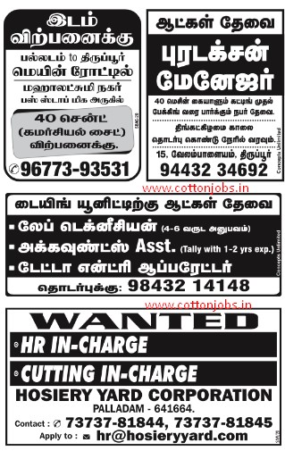 HomeCOIMBATORE JOBS DINAMALAR (27.12.2020 ) SUNDAY NEWS PAPER JOBS WANTED / VACANCY LIST OUT (TIRUPUR JOBS ,COIMBATORE JOBS ) 1000+ VACANCIES AVAILABLE COTTONJOBS.IN Sunday, December 27, 2020