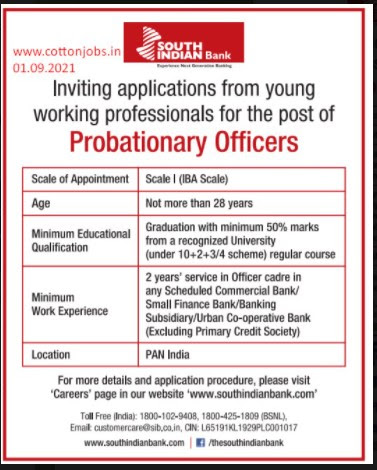 The South Indian Bank Ltd - openings -2021 official website: https://www.southindianbank.com/Careers/